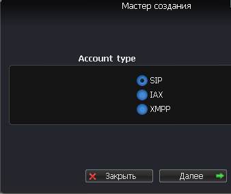 5. В появившемся окне выберите пункт меню SIP и нажмите далее.